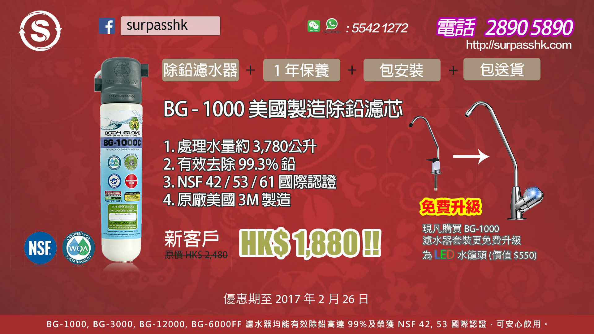 現凡購買BG-1000套裝 + 額外保養更換濾芯計劃 (BG-1000C),